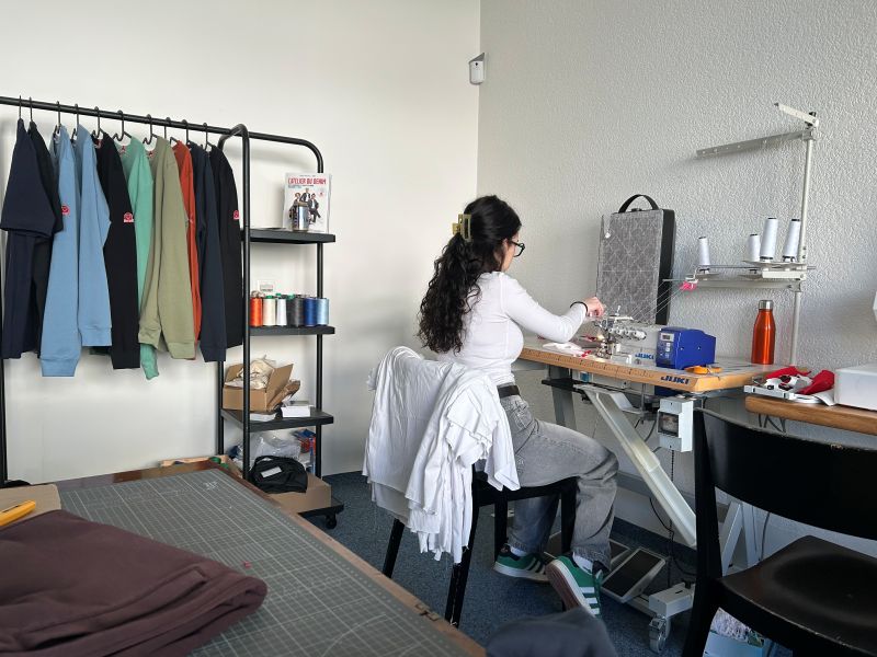 Dans notre atelier à Pully, chaque t-shirt est assemblé avec soin par notre couturière.
